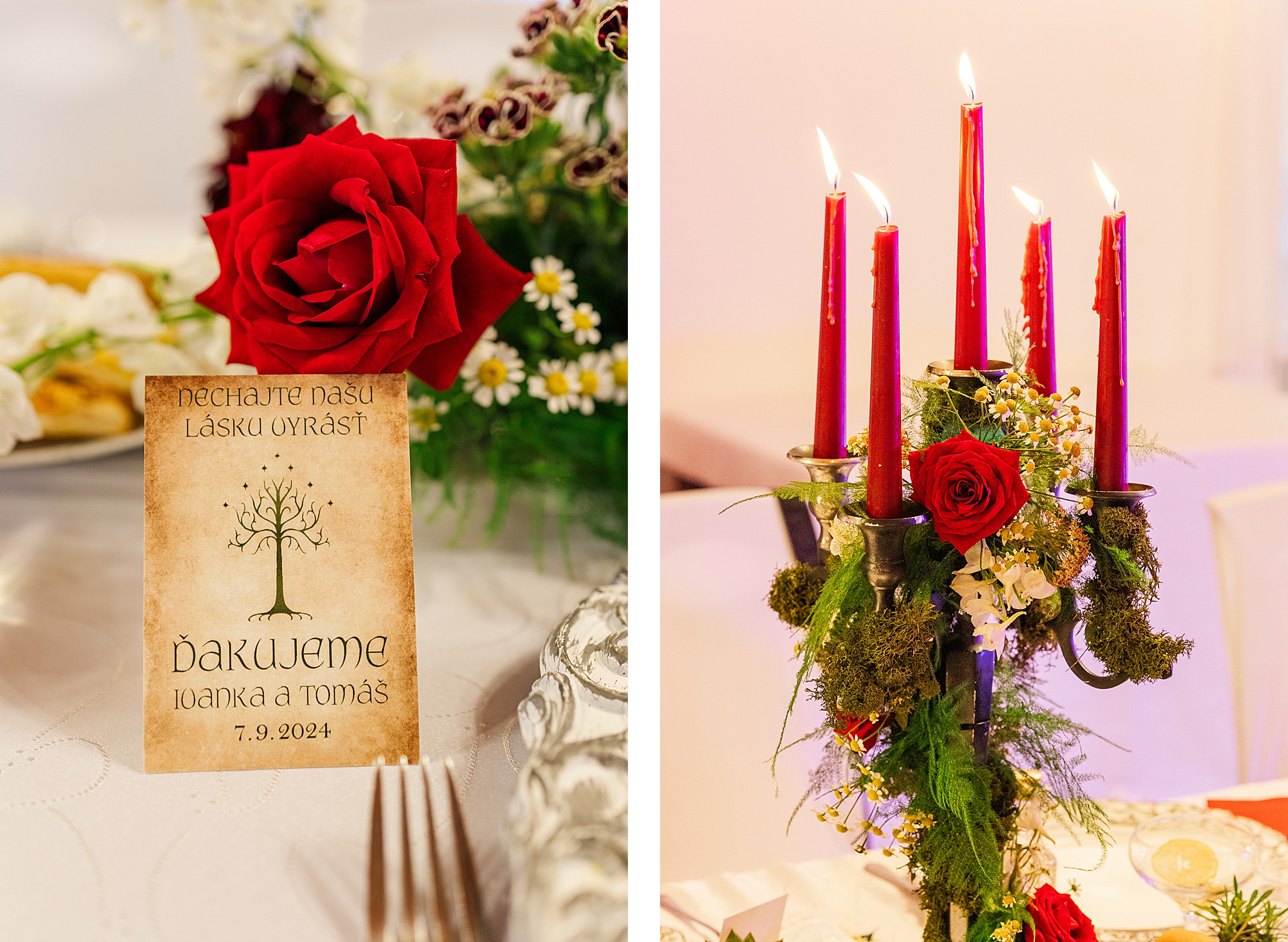 Táto svadba bola pre mňa výnimočná z viacerých dôvodov. Po prvé, bola to moja prvá svadba v evanjelickom kostole. Po druhé, celá výzdoba bola ladená do štýlu môjho obľúbeného filmu Hobit, ktorý mam veľmi rád.